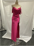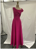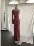 • VESTIDO ROSA LARGO ESCOTE DRAPEADO