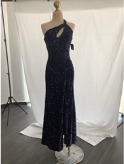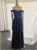 • VESTIDO AZUL MARINO LARGO UN SOLO HOMBRO