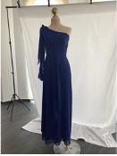 • VESTIDO AZUL REY LARGO UN SOLO HOMBRO