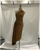 • VESTIDO COBRE ASIMÉTRICO PLISADO
